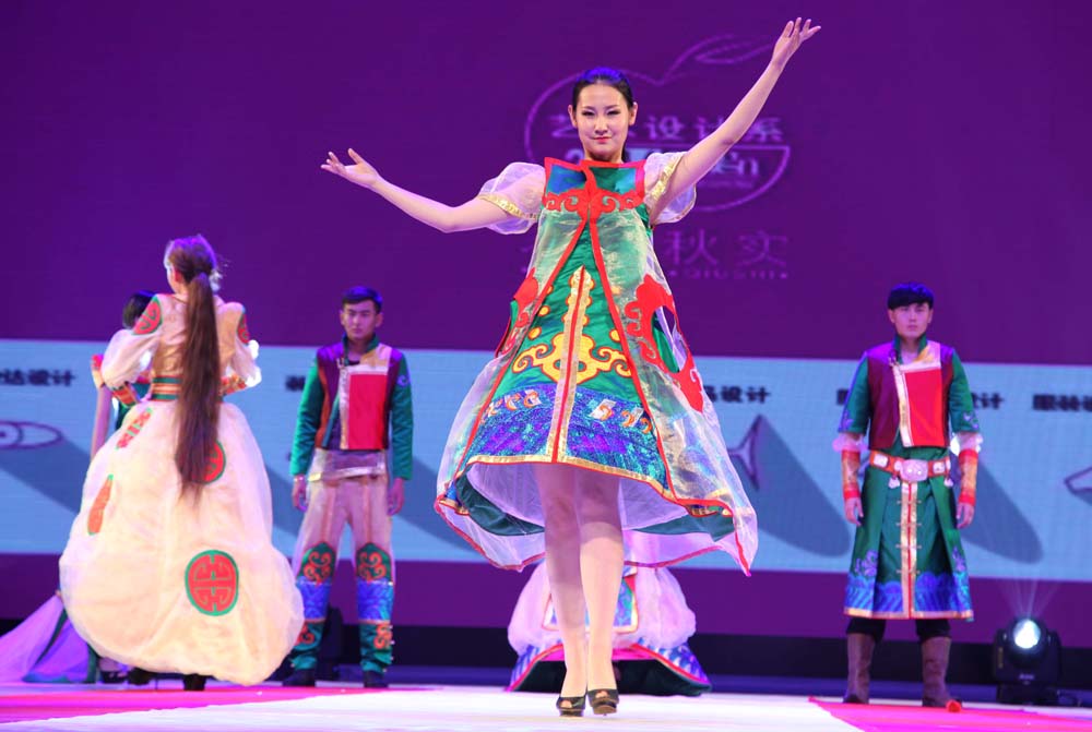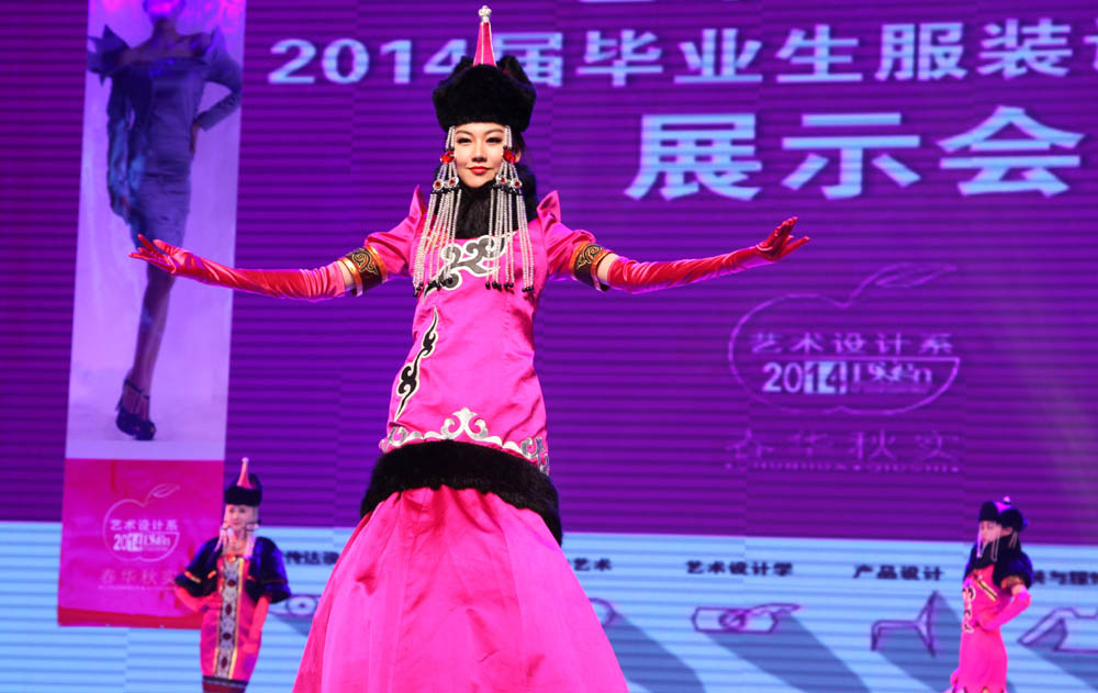5月14日,内蒙古大学艺术设计系在呼和浩特市举办主题为“春华秋实”的2014届毕业生服装设计作品展演,参加展演的200套作品分为民族服饰、创意服装、时装、礼服等4大类。