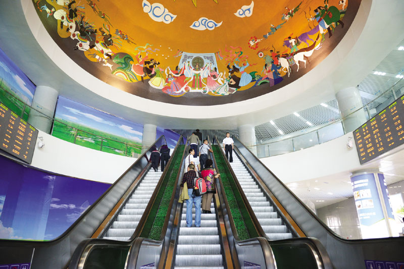 9月2日,旅客搭乘电梯进入候车区。记者 施佳丽 见习记者郭力摄