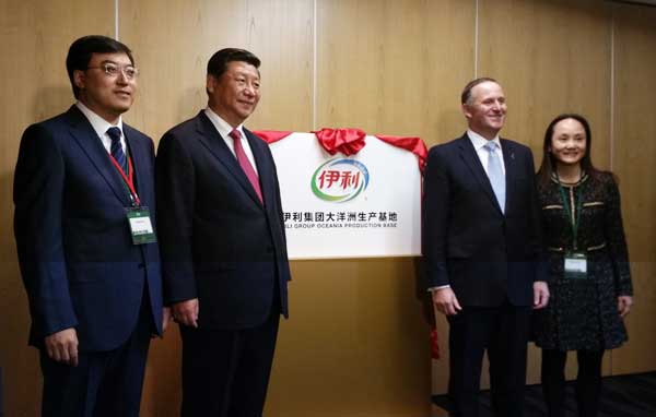 新西兰当地时间11月21日,中国国家主席习近平与新西兰总理约翰·基共同为伊利大洋洲生产基地揭牌,这是中新两国一揽子合作中首个揭牌的项目。该项目同时覆盖包装,生产、深加工、科研等多个领域,是全球目前最大的一体化乳业基地。