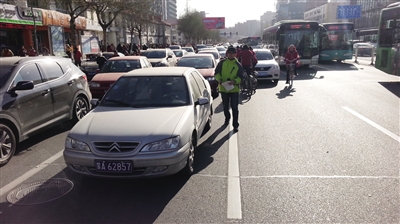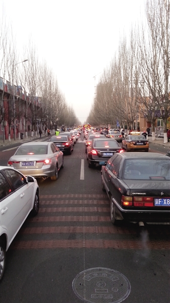 在学苑街记者采访发现,以南门外小学为例,学校门口的交通情况比较好,在交警的指挥下,送完孩子的家长一般不会在学校门口停留太久,但由于赶上了早高峰,不少车辆都被堵在路上了。因为学苑街只能从东向西走,家长不能像往常一样随意选择方向。记者开车跟着家长的车一起向锡林郭勒南路方向行驶,20多分钟后才走到锡林郭勒南路。