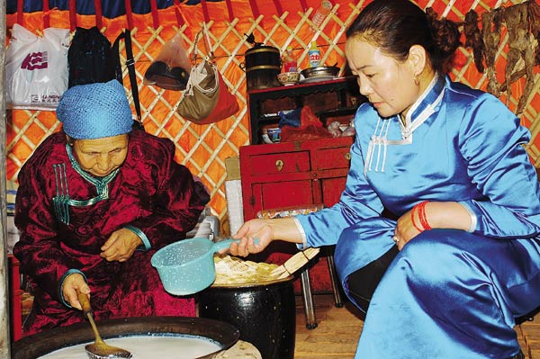 1月25日,锡林郭勒盟正蓝旗牧民正在制作奶食品,为即将到来的春节做准备。