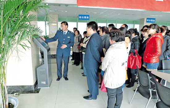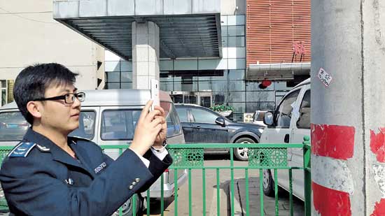 城管信息员沿街查看采集信息。记者皇甫秀玲摄