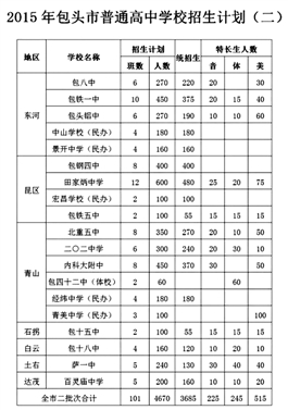 19日,包头市教育局正式公布2015年包头市普通高中学校招生计划。今年,包头市普通高中学校共计划招生15170人,较去年15240人减少70人。