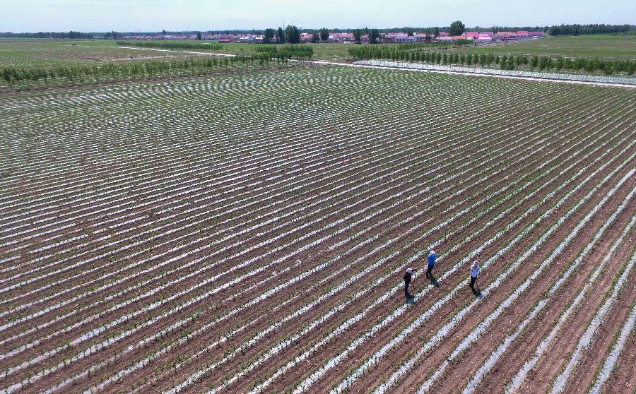 新华社照片,通辽(内蒙古),2016年6月2日内蒙古“粮仓”间苗忙