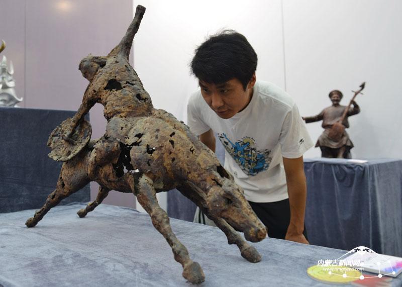 呼和浩特市民正在观看创意展品。6月29日,首届内蒙古文化产业博览会在呼和浩特开幕。内蒙古日报社融媒体记者 孟和朝鲁 摄