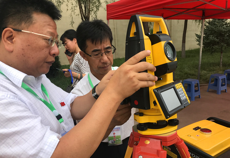 工作人员正在演练调试的全站测试仪是测量通讯塔偏移、摆浮和垂直度的必要工具。