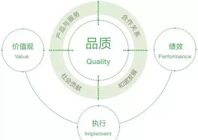 看过这张图,小编更愿意将QVIP换成Q=VIP,即:品质来源于企业的价值观、执行力和绩效的总和。价值观、执行力和绩效,构成了“品”字的三个“口”。