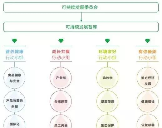 执行力需要恰当的组织治理。以蒙牛为例,其2013年就成立了可持续发展组织管理体系,以公司可持续发展委员会、可持续发展工作办公室及各业务部门可持续发展联络员为基础,形成了机构完整、权责明确、上下联动、运转高效的可持续发展管理机制,实现了可持续发展组织机构在总部、业务部门、下属企业的全面覆盖。