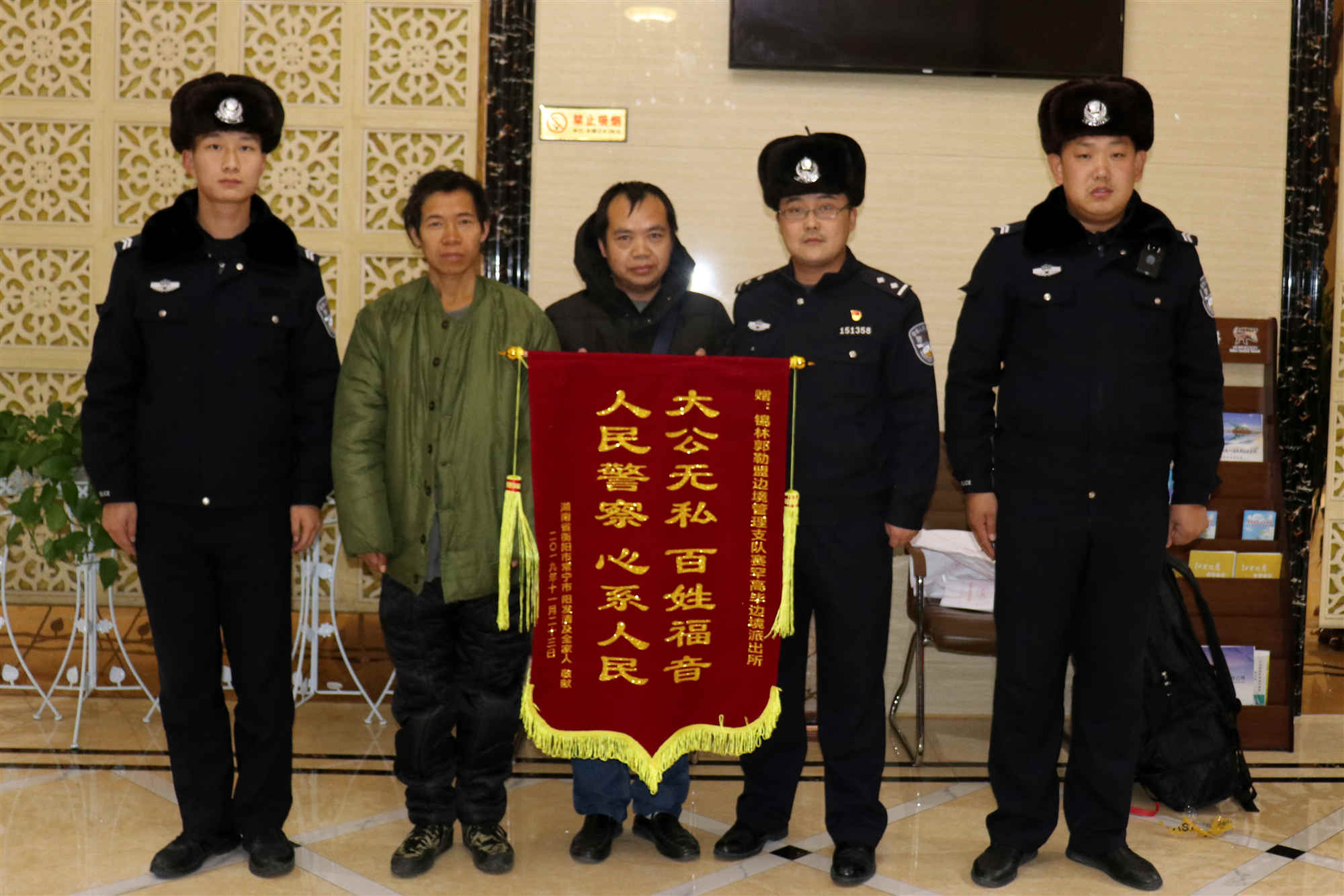 大公无私,百姓福音,人民警察,心系人民。11月24日,锡林郭勒边境管理支队赛罕高毕边境派出所收到湖南省衡阳市群众阳发清送来的一面锦旗上写道,感谢派出所民警帮其找回走失了一年的弟弟。