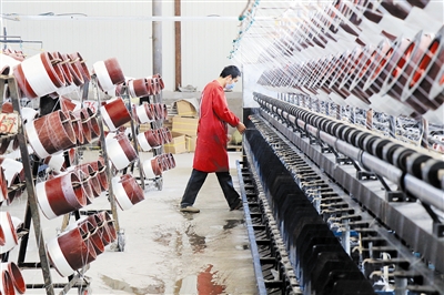 奈曼旗规划建设玻璃纤维产业制造基地,推动玻纤及复合材料项目加速落地。目前已有11家玻璃纤维企业在园区开工建设。这些企业建成后,产业链不断延伸,将形成相互间的上下游产业。图为内蒙古玻丝特制造有限公司生产车间一角。记者 杨朝东 邵南 摄