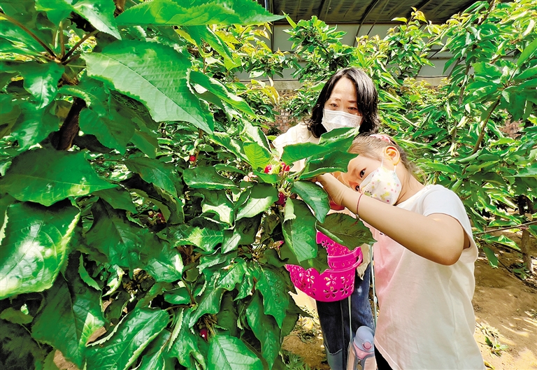 5月3日,市民在采摘园内采摘樱桃。“五一”小长假期间,呼和浩特市新城区野马图村樱桃丰收,吸引不少市民前来采摘。据了解,野马图村目前有401座温室大棚,种植户根据季节进行错峰种植,确保全年都有应季新鲜水果上市供游客采摘,从而增加收入。 (记者 孟和朝鲁)