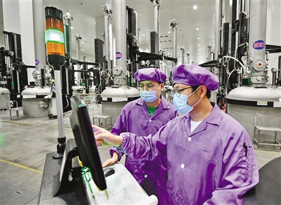 弘元新材料(包头)有限公司的员工在生产车间内工作。 (本版图片均由本报记者孟和朝鲁摄)