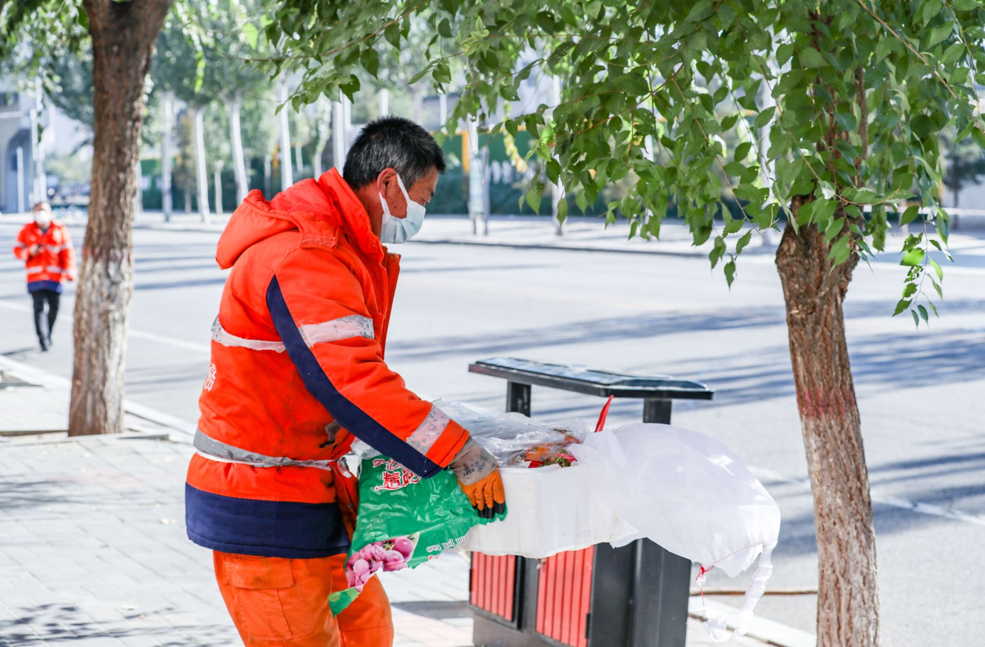 10月18日,呼和浩特市赛罕区环卫工作人员正在进行清扫清理工作。为切实做好疫情防控期间呼和浩特市生活垃圾清运工作,让城市清洁无死角,环卫部门工作人员坚守在城市街头、社区等工作岗位,在做好自身防护的同时,维护着城市的清洁环境。摄影/草原全媒·正北方网首席记者牛天甲
