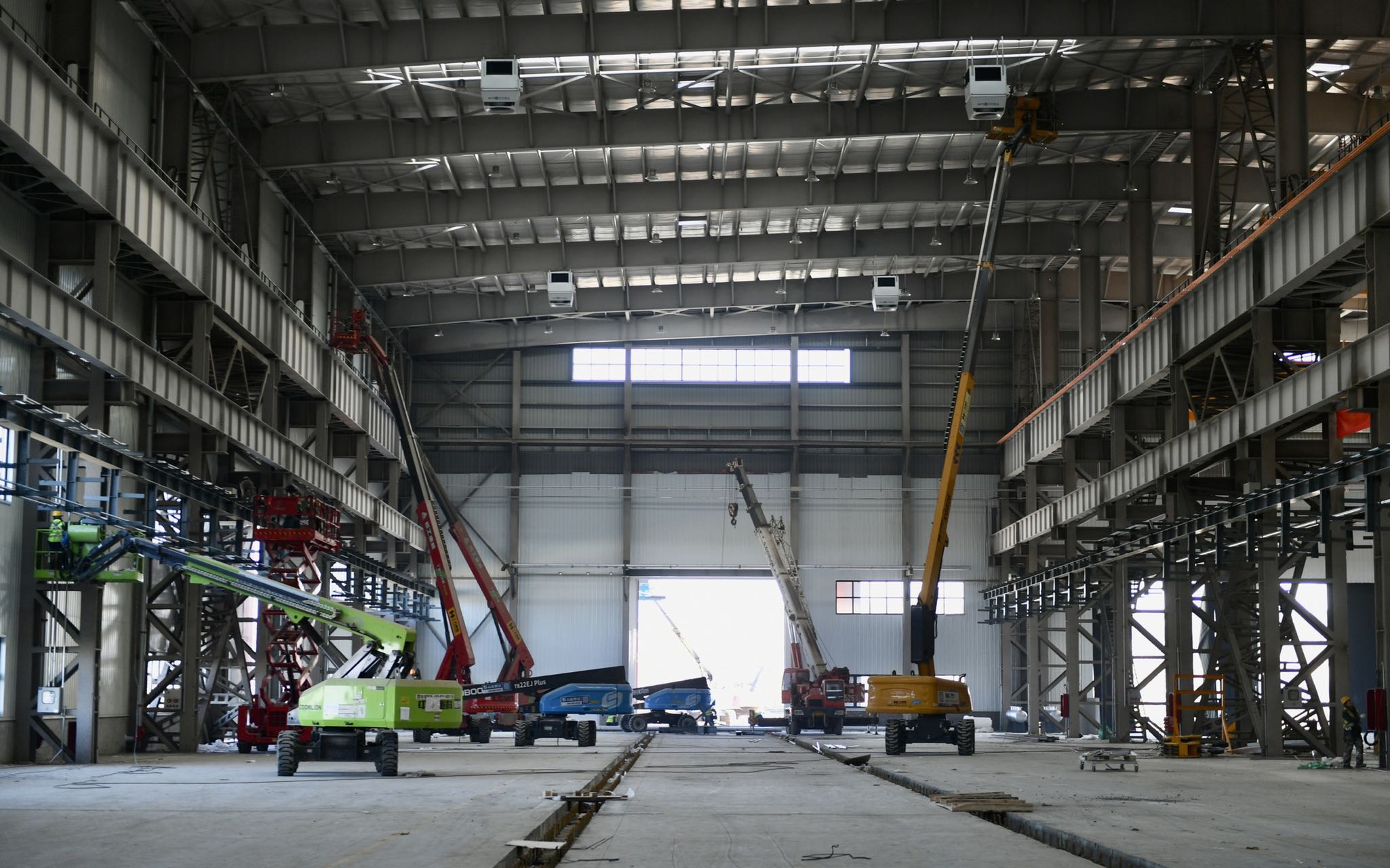 目前该项目整机车间水电已完成总量75%,暖通完成40%,外网管道及配套完成总量的60%。