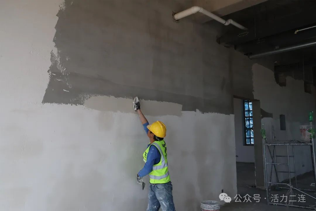 近日,记者在现场看到,工人们按照分工各司其职,有的正在加班加点地忙着浇筑地面、粘贴墙砖地砖、刮腻子,有的根据图纸规划有条不紊地进行消防、空调、医疗气体管道安装等工作。目前,该医院综合楼项目主体结构已全面封顶,转入装饰装修阶段,工程已完成投资0.69亿元。