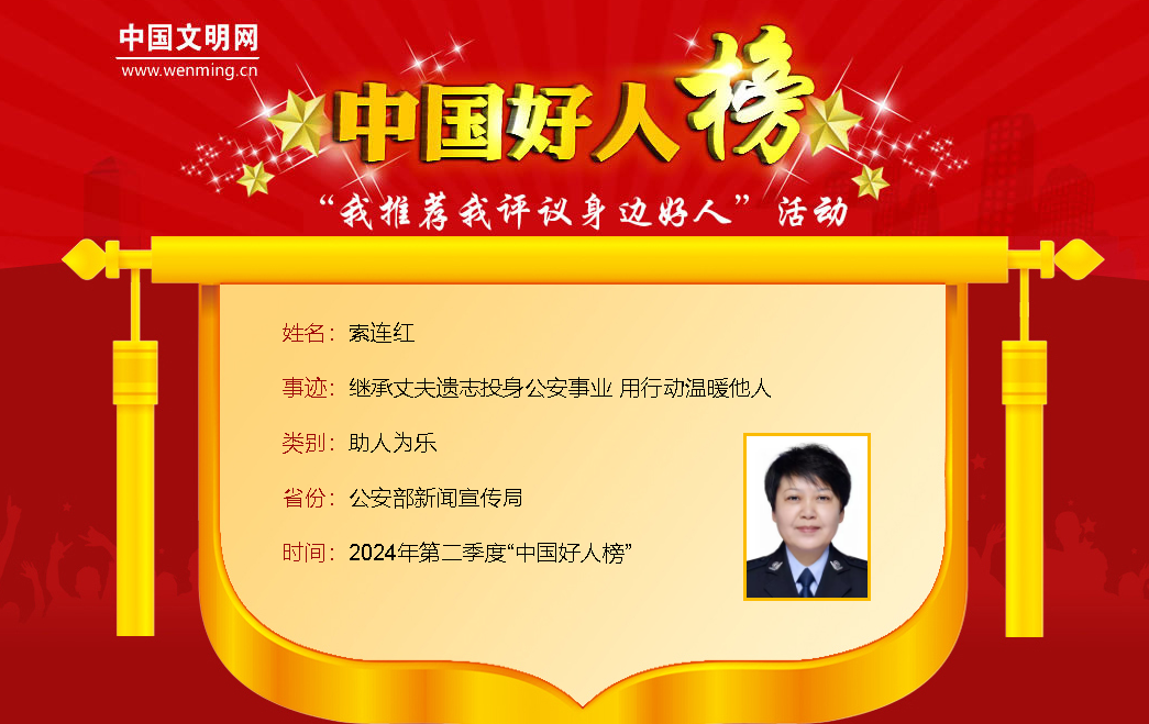 2024年7月30日,索连红登上2024年第二季度“中国好人榜”,一起来了解她的故事吧!