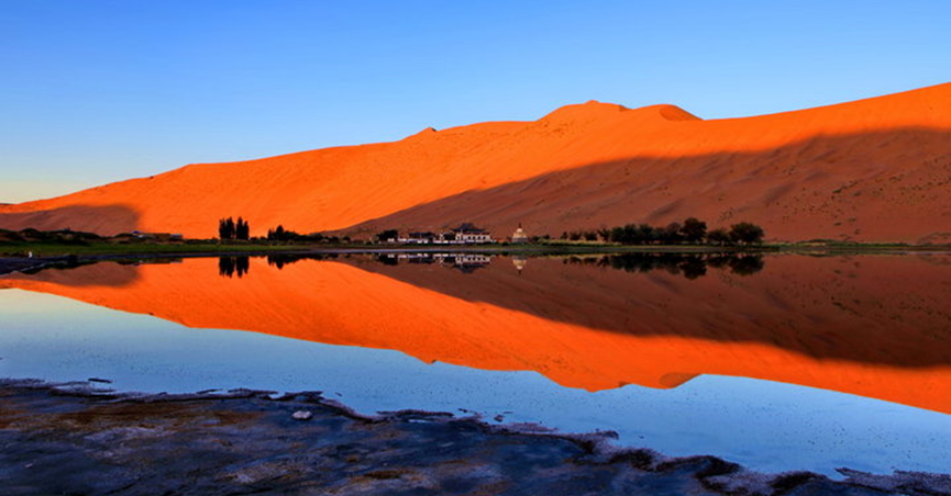 达格图湖,巴丹吉林沙漠中的红海子。