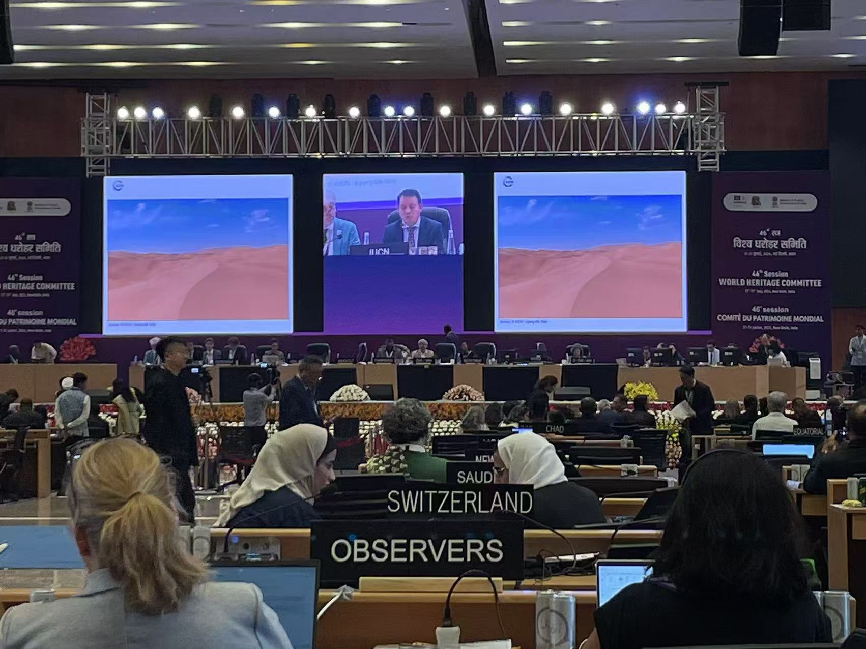 联合国教科文组织第46届世界遗产大会现场。