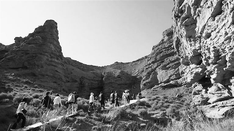近日,在阿右旗巴彦高勒苏木额日布盖峡谷景区,独特的丹霞地貌吸引了各地游客前来“探秘”。峡谷内橙红色岩崖高耸,“青蛙问天”“一线天”“猪八戒照镜子”“龙首”等景点让游客们在壮美风光中领略到大自然的鬼斧神工。“这里地貌独特,令人震撼,我用相机记录下这些神奇风景,分享给家人朋友,一起欣赏阿拉善的美丽风光。”北京游客战莹说。