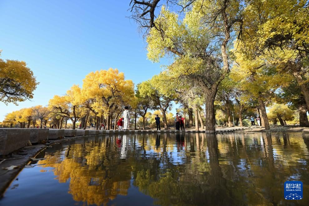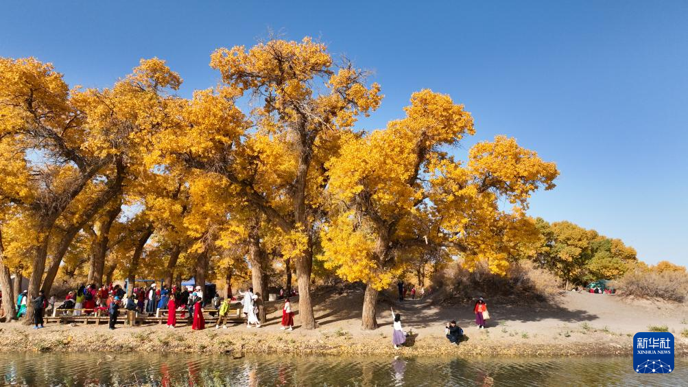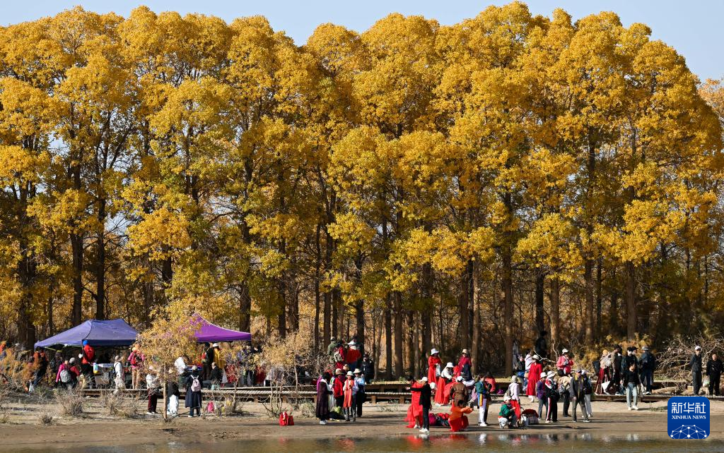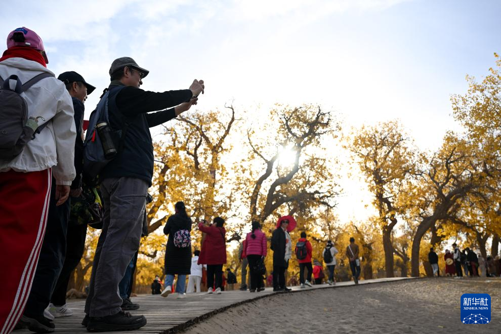 近日,内蒙古阿拉善盟额济纳旗的胡杨林进入最佳观赏期,吸引众多游客前来观赏游玩。10月1日至10月12日额济纳旗总旅游人次超过136万,同比增长9.83%。新华社记者 贝赫 摄