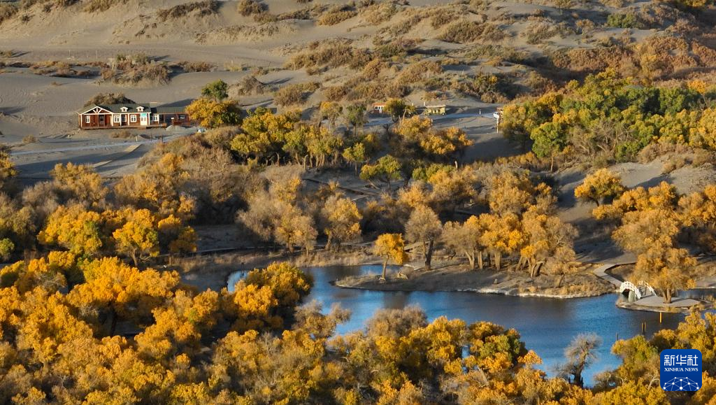 10月13日拍摄的内蒙古阿拉善盟额济纳旗大漠胡杨林景区(无人机照片)。新华社记者 贝赫 摄