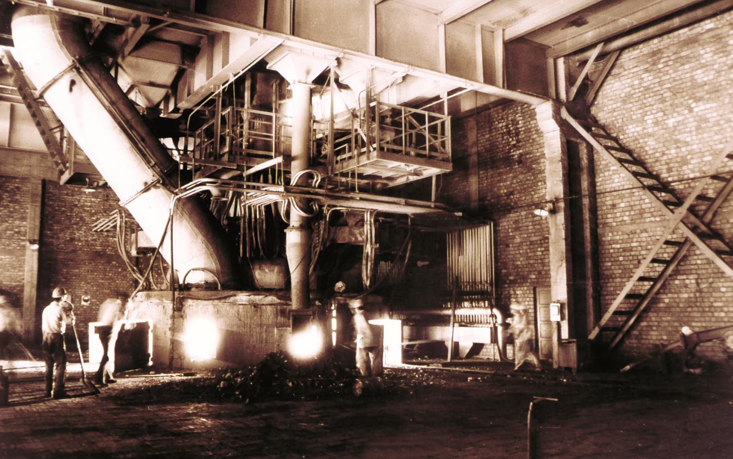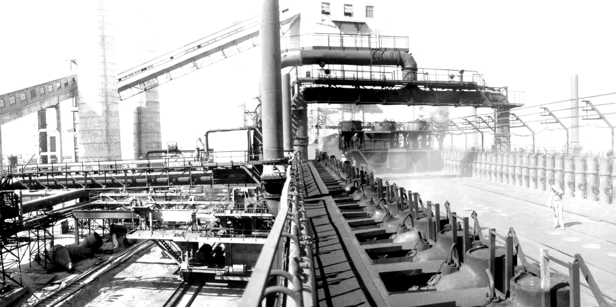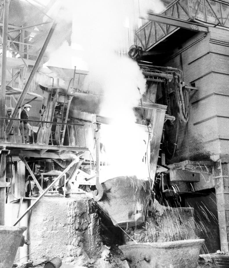 炼钢厂一号平炉出钢了