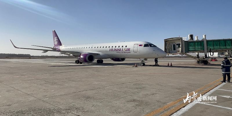 蒙古匈奴航空一架E190型飞机由包头东河国际机场顺利起飞