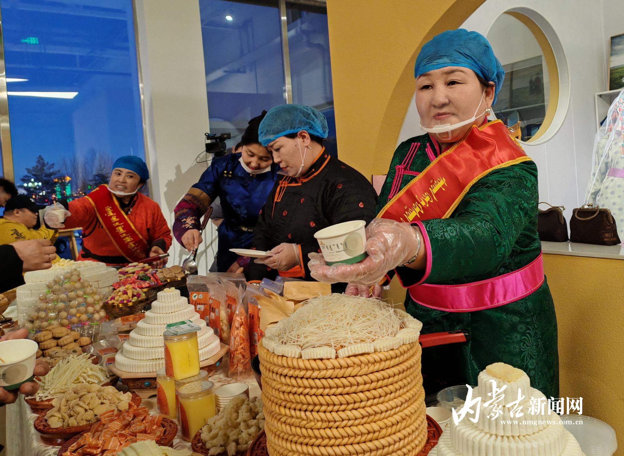 非遗传承人向游客推荐品尝正蓝旗奶食品
