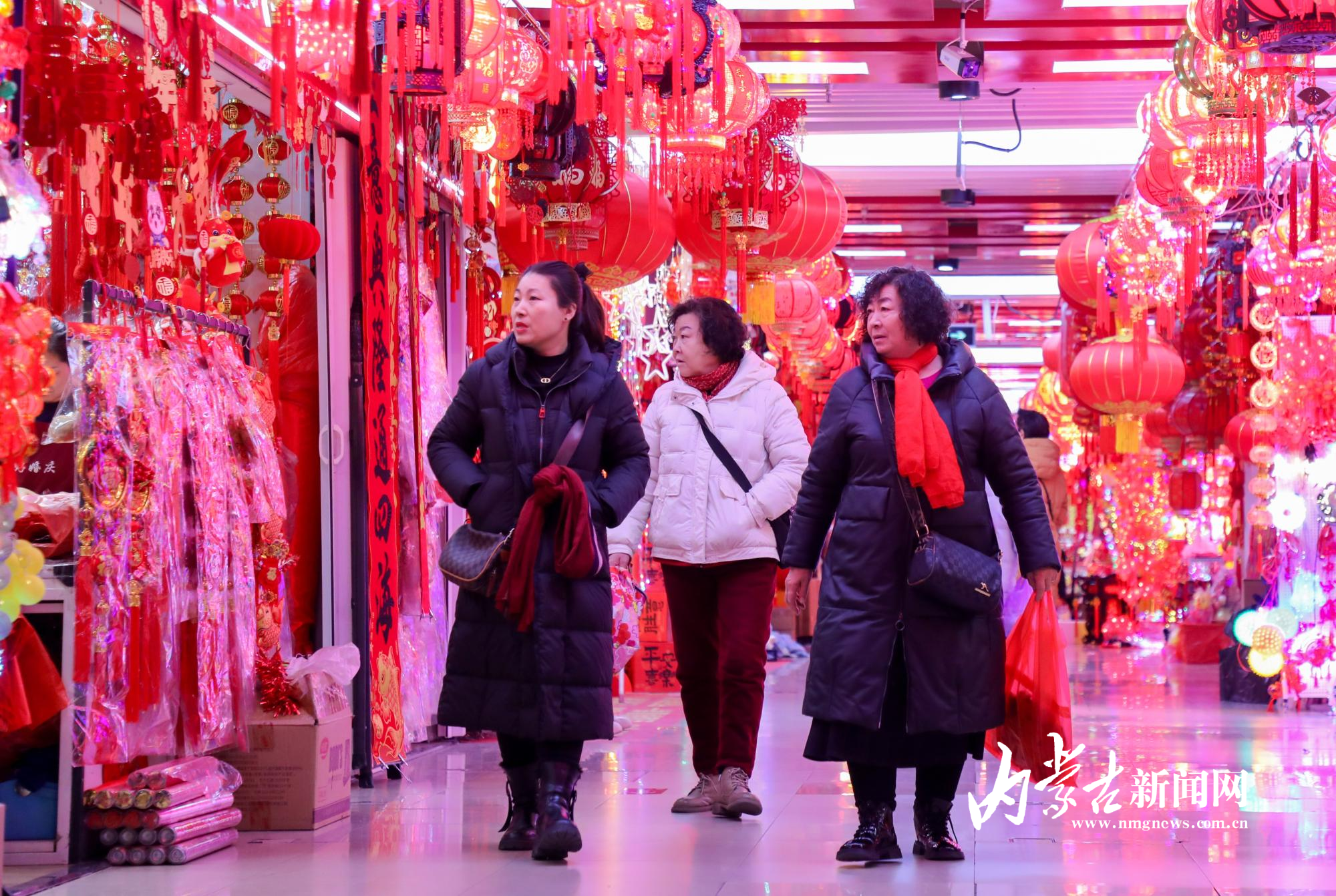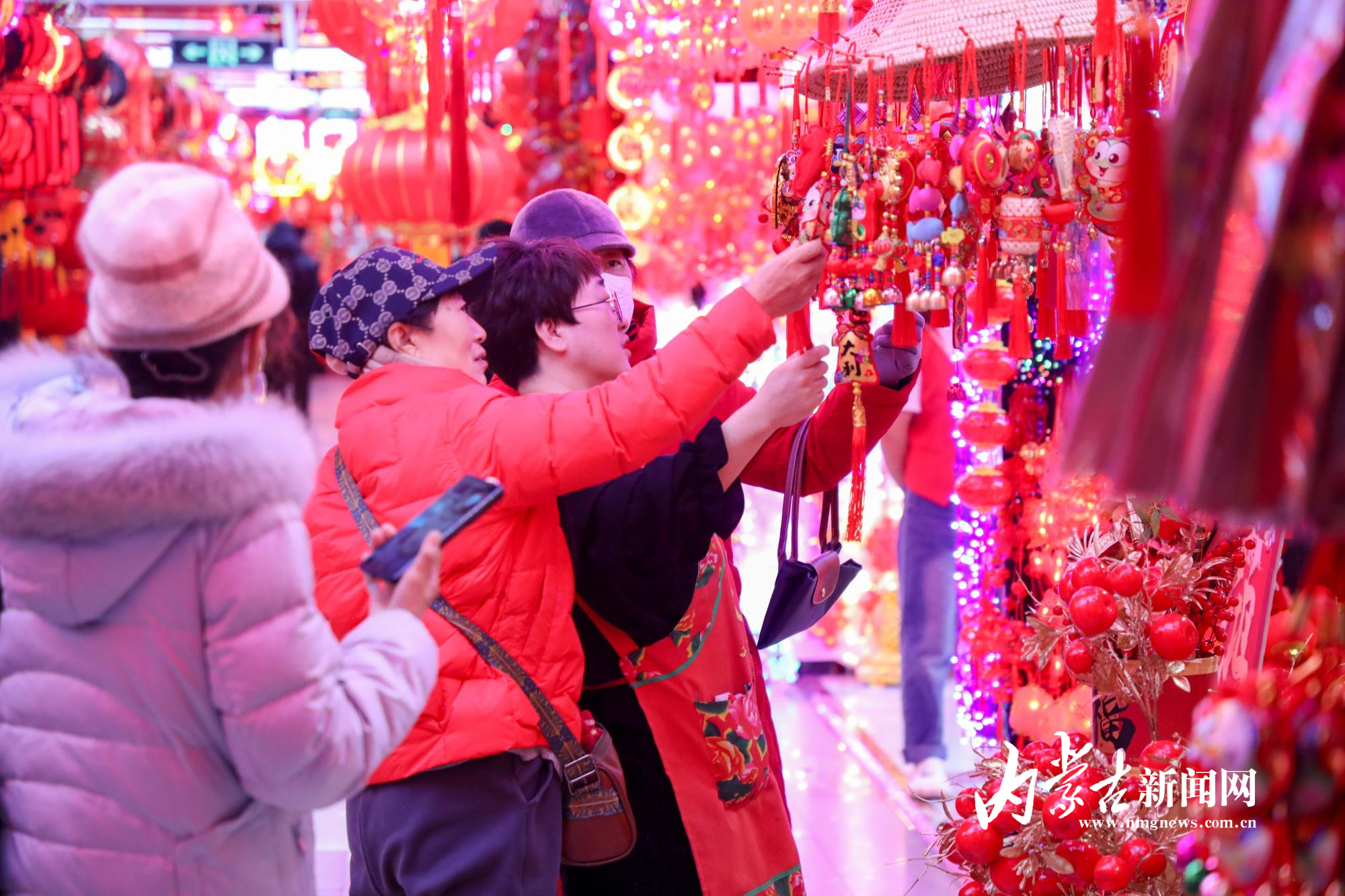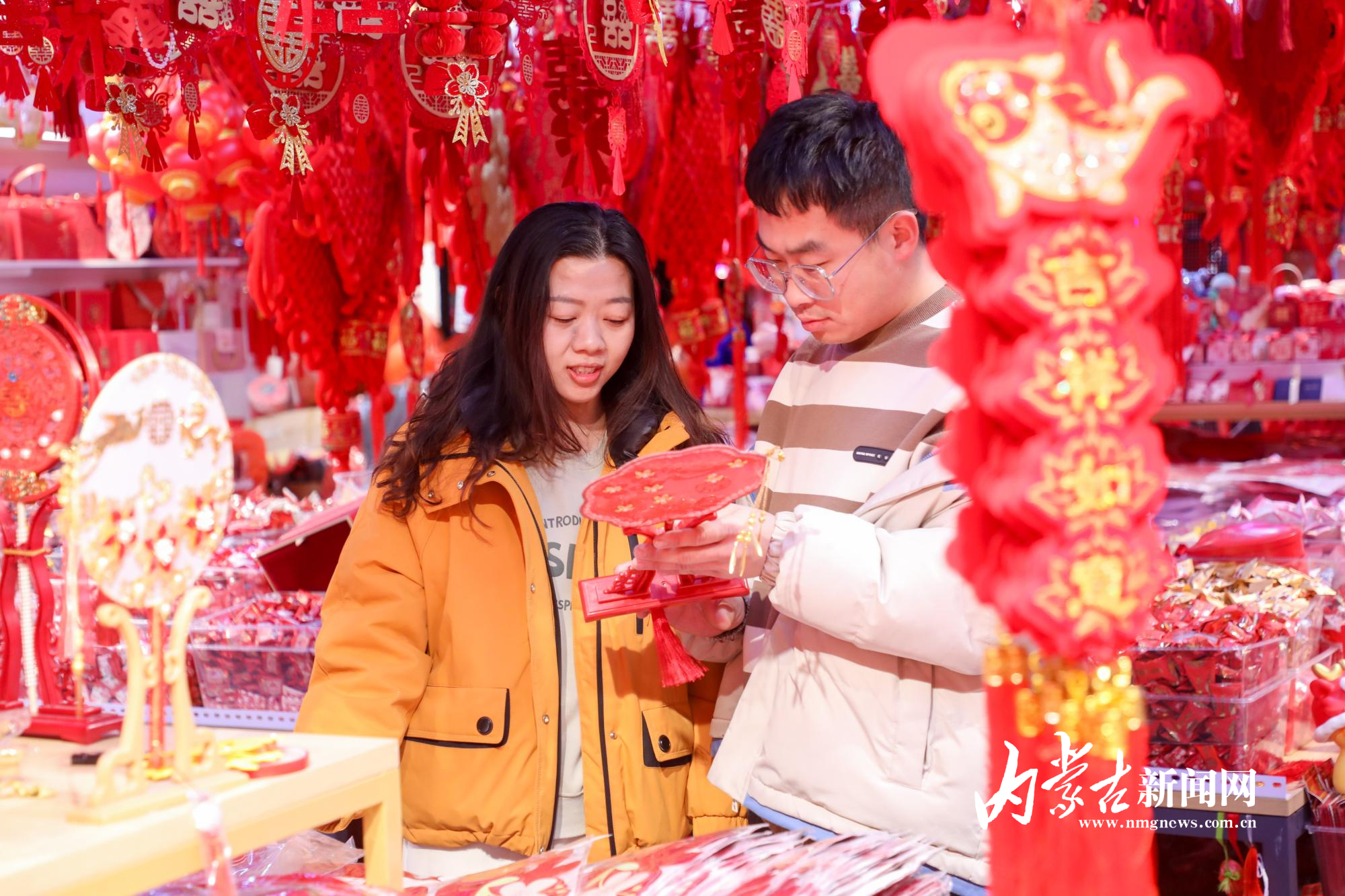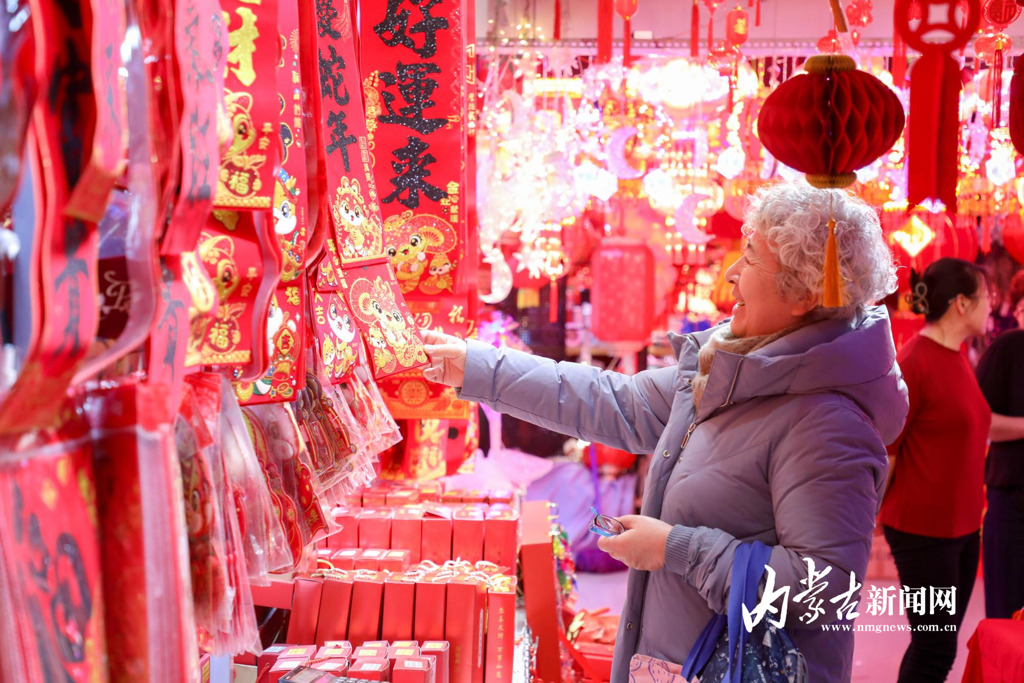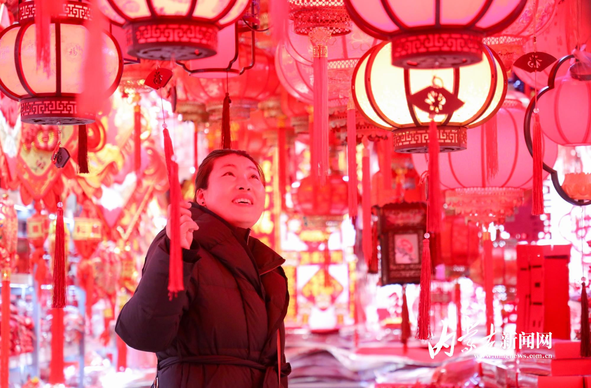 1月6日,市民在呼和浩特市国贸批发城选购春节饰品。随着蛇年春节临近,呼和浩特市各种春节饰品热销。春联、红灯笼、饰品将摊位装点得喜气洋洋,市民们驻足选购。摄影/草原云·内蒙古新闻网首席记者 牛天甲