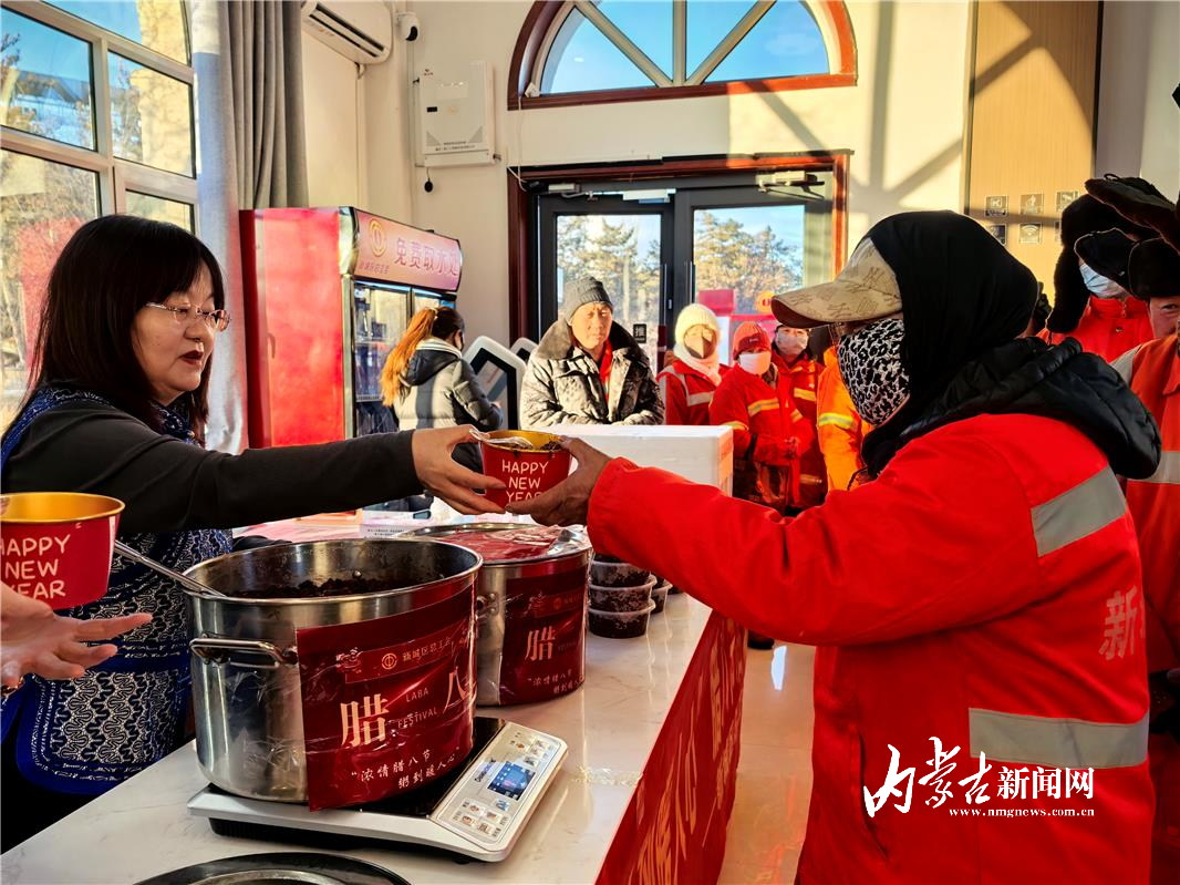 呼和浩特市新城区总工会宣传部负责人吴双介绍,为感谢户外劳动者的辛勤付出,新城区总工会准备了8000份粥,将向新城区范围的五七联盟骑手之家、交警岗亭、恼包村户外劳动者服务站点的一线工作人员送上贴心温暖。