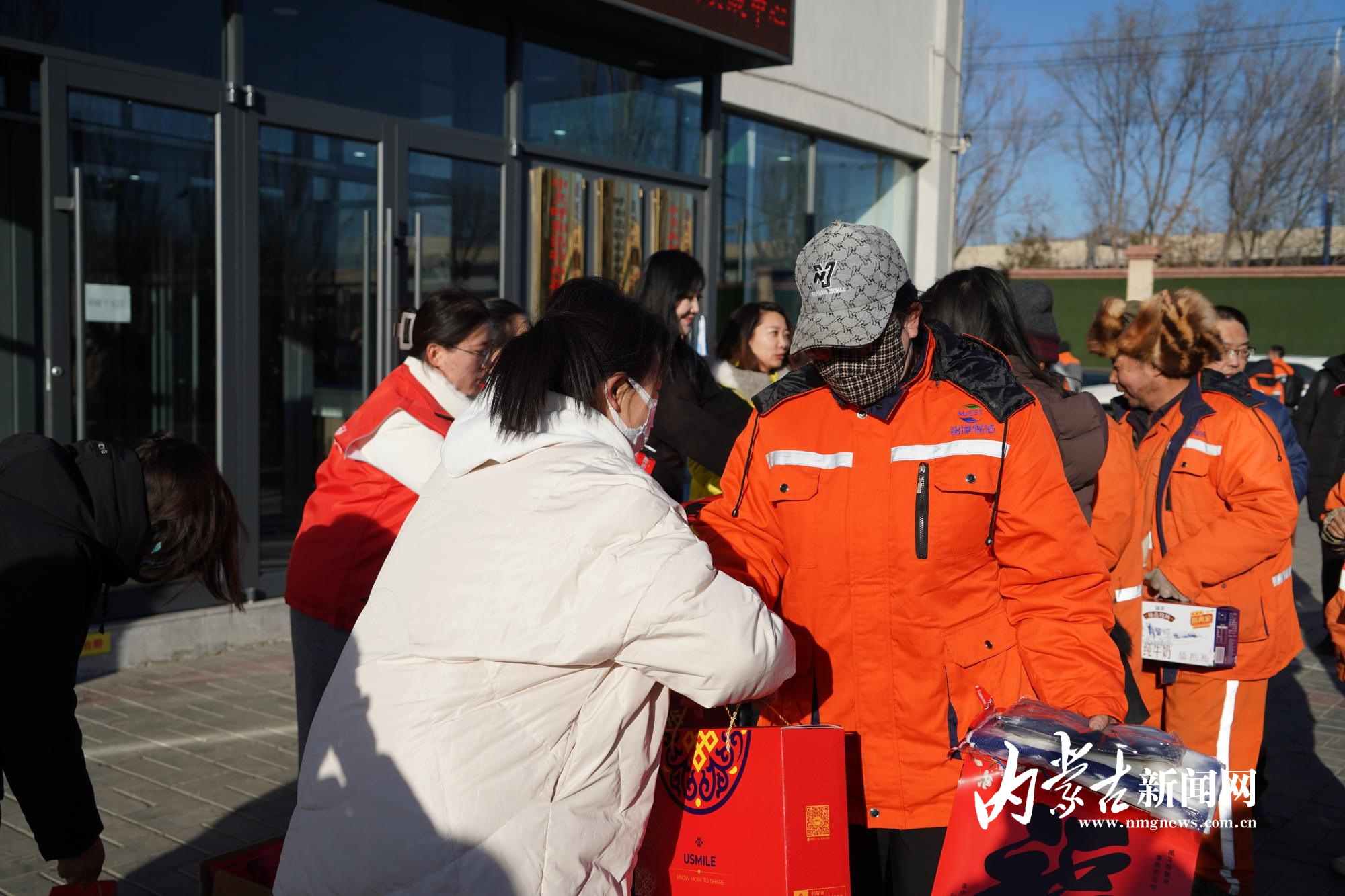 活动现场为环卫工人、快递员、外卖员、交警、城管等75名一线劳动者发放了牛奶、护膝、手套、洗护用品和食品爱心礼盒等120余份慰问品,对他们在寒冬中坚守岗位的敬业精神致以诚挚的敬意与感谢。
