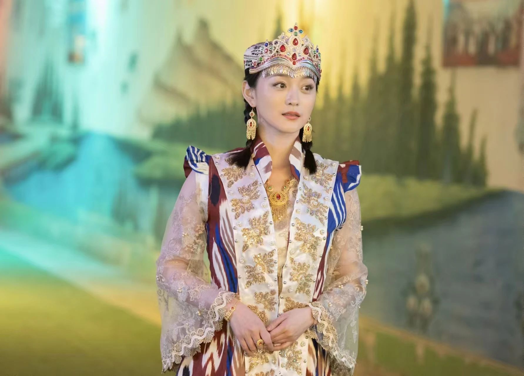 《上海古丽》的女主角沈浅浅由何泓姗饰演,男主角阿迪江由米热饰演,两位演员青春靓丽,充满激情,在影片中均贡献了精彩的表演。影片中金胡杨国家森林公园、塔克拉玛干沙漠、喀什古城、大巴扎、雪山……这些独具特色的美景,很好地烘托了男女主人公的绚丽爱情。片中美景、美人、美食,演释的绚丽爱情,也一定会吸引更多的人去新疆,去喀什,去体验不一样的感受。