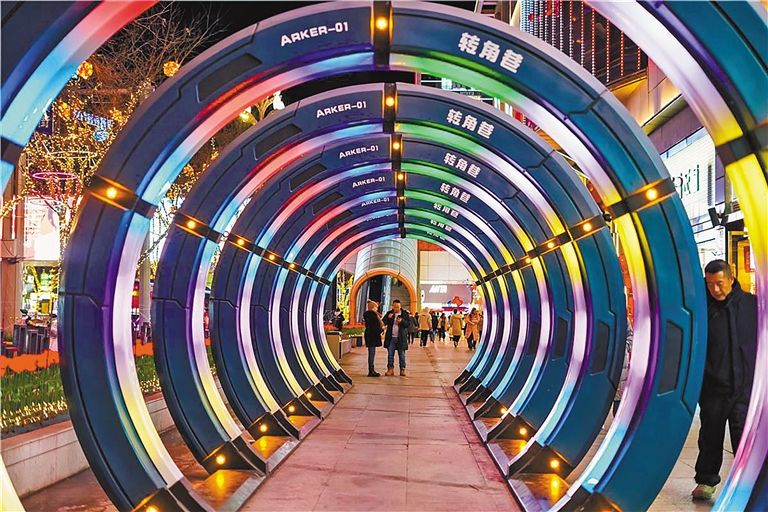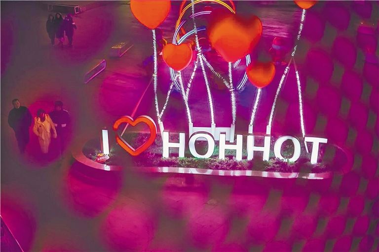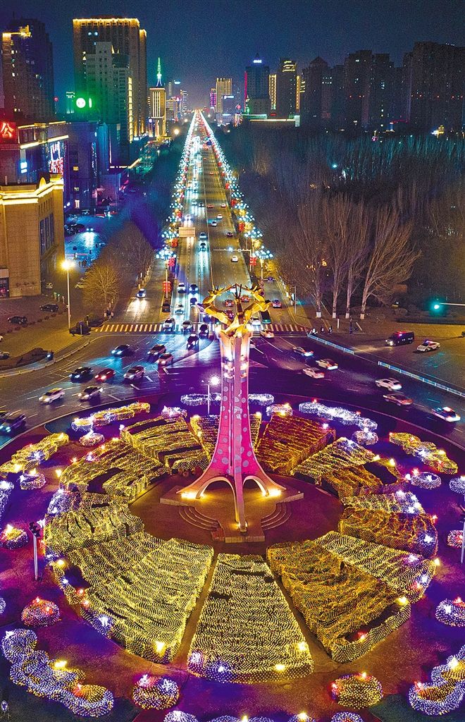 夜幕降临,内蒙古各地灯火璀璨,造型各异的彩灯将大街小巷装点得绚烂多彩、梦幻迷人,为新春增添了浓厚的节日氛围。草原云·内蒙古新闻网记者 王晓博 摄