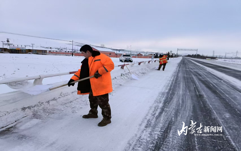 本网讯(草原云·内蒙古新闻网记者 张巧珍 通讯员 刁宇来) 2月5日,呼伦贝尔市额尔古纳境内普降小雪,能见度低。最美331边境公路宛如一条黑色的长龙蜿蜒在额尔古纳境内茫茫的林海雪原之中。由于风力较大,G331线根河桥至拉布大林K4616+500-K4627+631局部路段存在少量风吹雪现象,平均厚度5厘米,宽度3米。为防止风吹雪持续蔓延,呼伦贝尔市交通运输事业发展中心拉布大林分中心及时出动除雪车两台、巡查车一台,展开清雪作业。此次降雪天气过程恰逢春节返程高峰,为全力保障道路交通安全畅通,拉布大林分中心提前启动恶劣天气应急预案,第一时间开展清雪除冰工作。