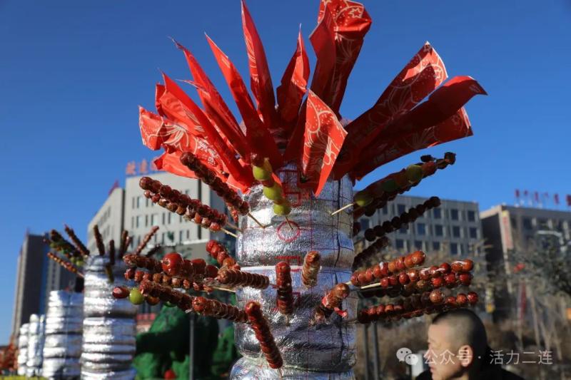 元宵节这一天,大家绝对感受到了来自口岸人民的热情。高两米的糖葫芦树迅速成为热门打卡点,各式各样水果制成的糖葫芦颜色鲜艳且美味可口,单棵2米高的糖葫芦树有100串糖葫芦。1000串晶莹剔透的糖葫芦挂满枝头,招人稀罕,吸引了不少群众驻足打卡,成为元宵节最亮眼的风景线。