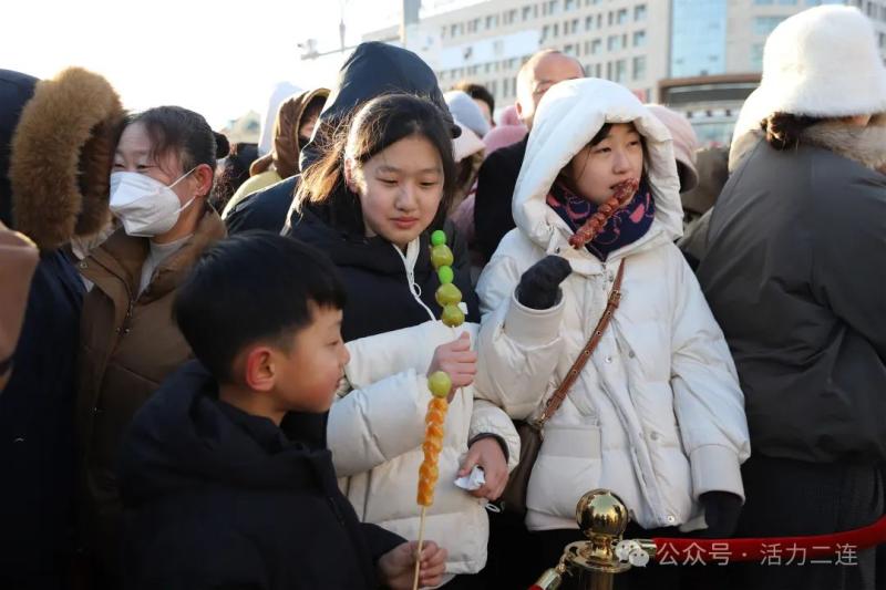 群众格根图雅说:“今天元宵节我们特别开心,非常热闹,我们免费吃到了糖葫芦,这个糖葫芦也寓意着我们生活越来越甜蜜。”