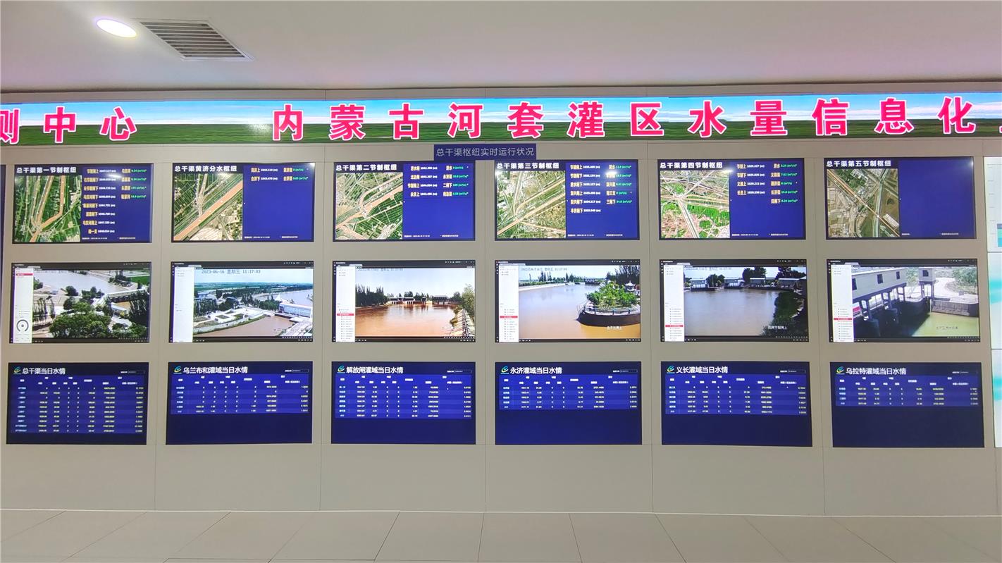 走进河套灌区水量信息化监测中心,50多米长的数字墙上,需水评估、水量调配、方案对比、灌溉调度、水权系统等实时画面清晰可见。