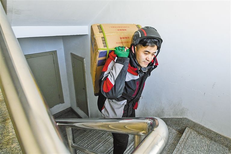 对于快递员来说,爬楼梯已是家常便饭。