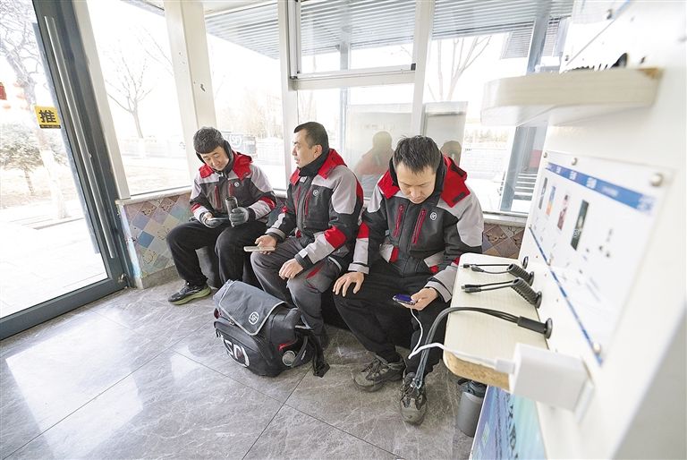快递员在驿站里休息。目前,呼和浩特市共有“红蜂驿站”175个,“青城驿站”270个,司机之家4个,累计服务8000余人次。