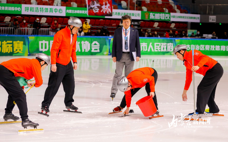 工作人员正在补冰