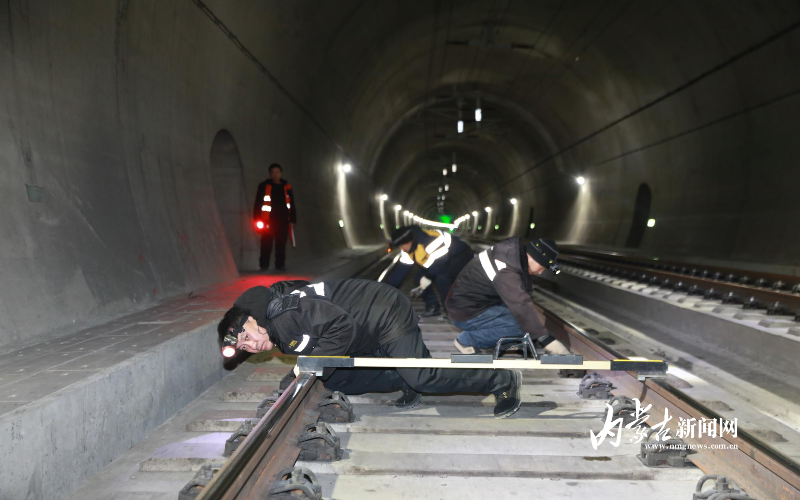 线路工们在新建克什克腾隧道紧张工作