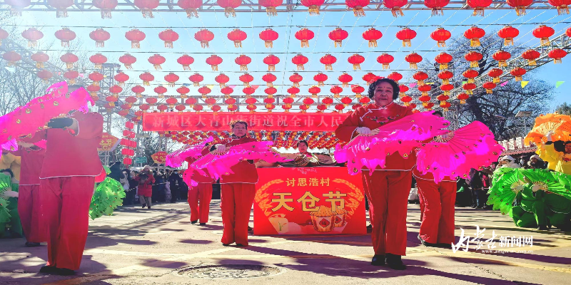 当日10时许,随着主持人宣布“天仓节”活动正式启动,民俗活动拉开帷幕,威风锣鼓的鼓手英姿飒爽,舞狮的小伙精神抖擞,观众们纷纷举起手机,记录下一个个精彩的瞬间。“今天天气也不太冷,听说讨思浩村有这个活动,特意过来转一转,感觉不虚此行,有小时候过年的氛围。”市民徐先生告诉记者。