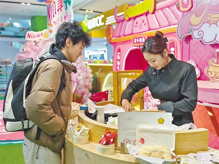 游客正在挑选文创产品。