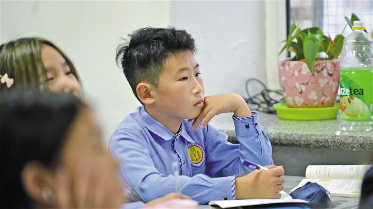 巴特敖日喜呼在学校上课。