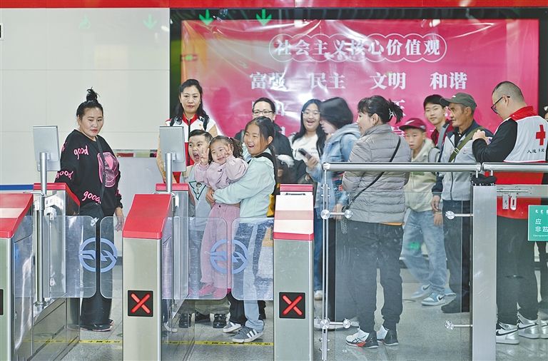 活泼可爱的小朋友们准备乘坐地铁。