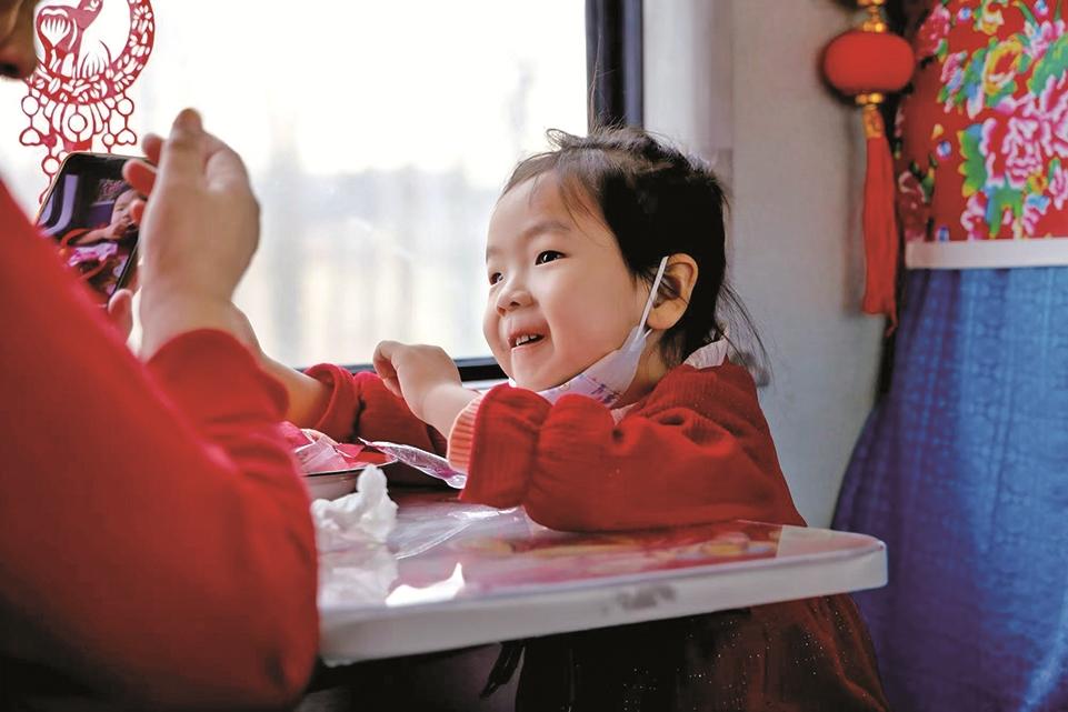 一张张贴在车窗上的“非遗”窗花剪纸,一条条红黄蓝大花座椅枕巾,一节节以蓝天白云为底色的车厢顶棚,一首首悦耳的草原歌曲和悠扬的马头琴声……这个冬季,一列列由内蒙古兴安盟乌兰浩特往返于阿尔山百年老车站的“歌游内蒙古 梦幻阿尔山”冰雪主题列车成为人们争相体验的旅游产品。