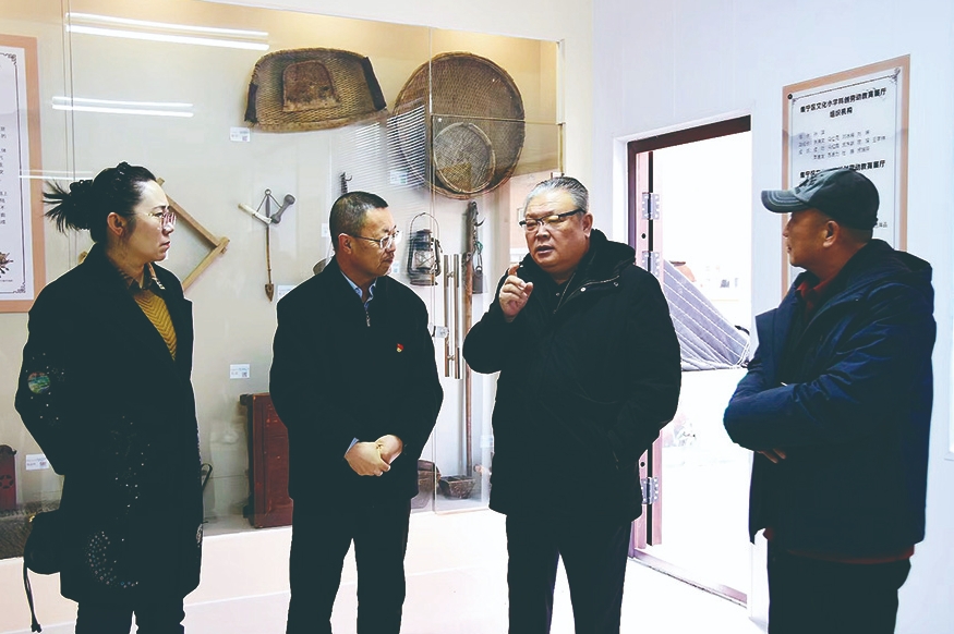 讲座结束后,文化小学校长孙琪带着关慧明以及随行工作人员共同参观了学校的水培室、农耕文化展厅以及劳动实践基地。在水培室里,孙琪向关慧明详细介绍了打造水培室的初衷和意义,以及水培室各项设施的运行原理。关慧明听得专注,不时微微点头。随后,他踱步至水培架前,俯身凑近,轻轻拨开嫩绿叶片,查看背面有无病虫害迹象,又伸手触摸营养液,感受温度与浓稠度。在农耕文化展厅,各式各样古老的农耕工具,如犁、耙、石磨,以及一幅幅展现农耕历史的图片,吸引了众人的目光。关慧明一边参观,一边向大家讲述过去农民们的辛勤劳作以及农业生产方式的变迁。随行人员听得入神,深切感受到农耕文化的博大精深。