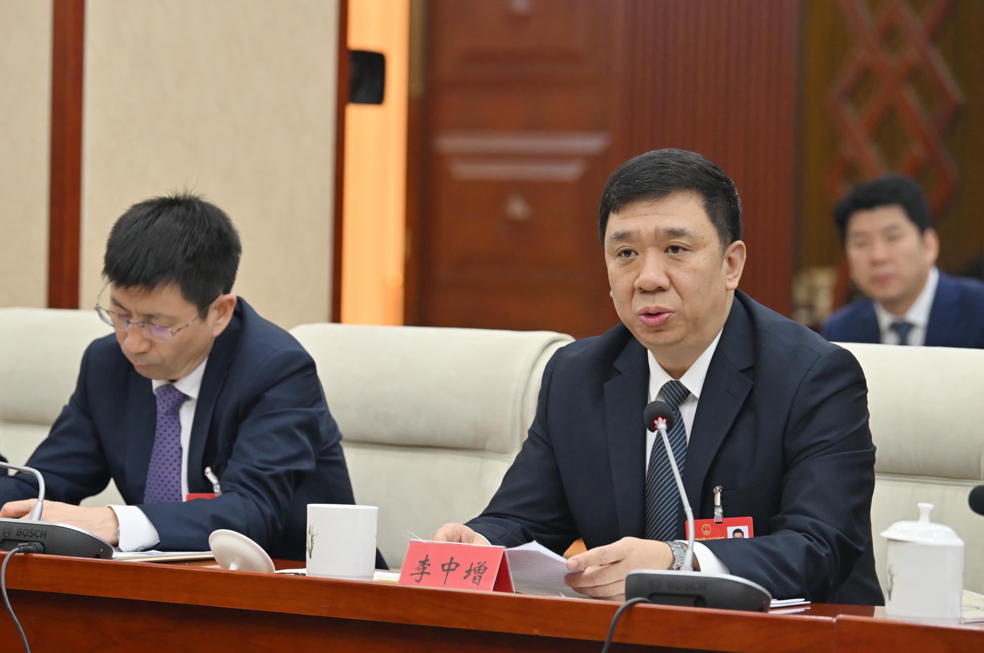 3月9日,全国人大代表李中增(右)在审议“两高”工作报告时建议,司法机关应对可以应用人工智能的范畴作出明确规定,并加以鼓励和引导。草原云记者 马建兵 摄