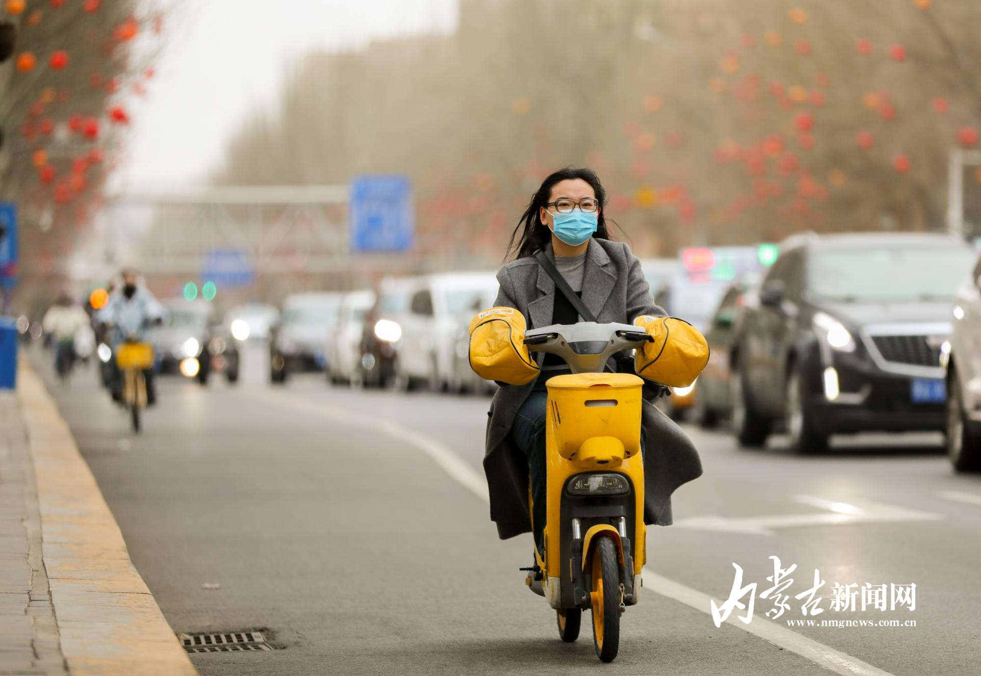 3月11日,呼和浩特出现扬沙天气,市民在沙尘天气中出行。当日,内蒙古自治区气象台发布沙尘暴黄色预警信号,巴彦淖尔市北部、乌海市、鄂尔多斯市西北部、包头市中部和北部、呼和浩特市北部、乌兰察布市、锡林郭勒盟大部、赤峰市西北部出现沙尘暴天气,能见度小于1000米,局地有强沙尘暴,能见度小于500米。摄影/草原云·内蒙古新闻网首席记者 牛天甲