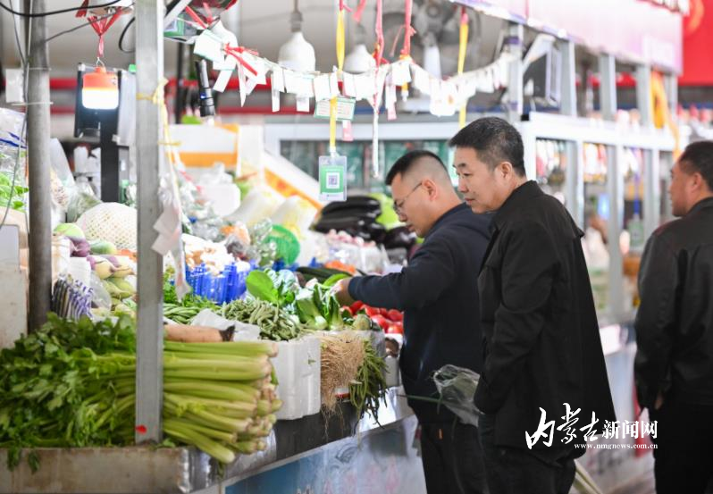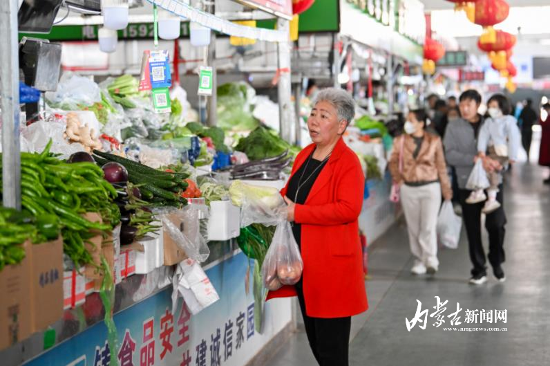 3月26日,呼和浩特市保全庄农贸市场,前来购买蔬菜、生鲜的市民络绎不绝。据呼和浩特市价格认证监测中心对市场监测数据显示,3月第三周呼和浩特市蔬菜、猪肉、牛羊肉零售价格小幅上涨,鸡肉、鸡蛋零售价格呈下降趋势,其他粮油副食品零售价格基本稳定。其中,在监测的15种蔬菜周平均零售价格为3.32元/斤,比上周每斤上涨0.06元,涨幅1.84%。随着天气逐渐转暖,预计后期蔬菜价格将呈现下行的态势。摄影/草原云·内蒙古新闻网首席记者 牛天甲